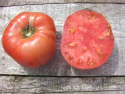 A large fruited (most fruit in the one pound range), potato leaf, pink heirloom tomato that has taken on legendary status due to its superb flavour. Average 25 seeds/packet