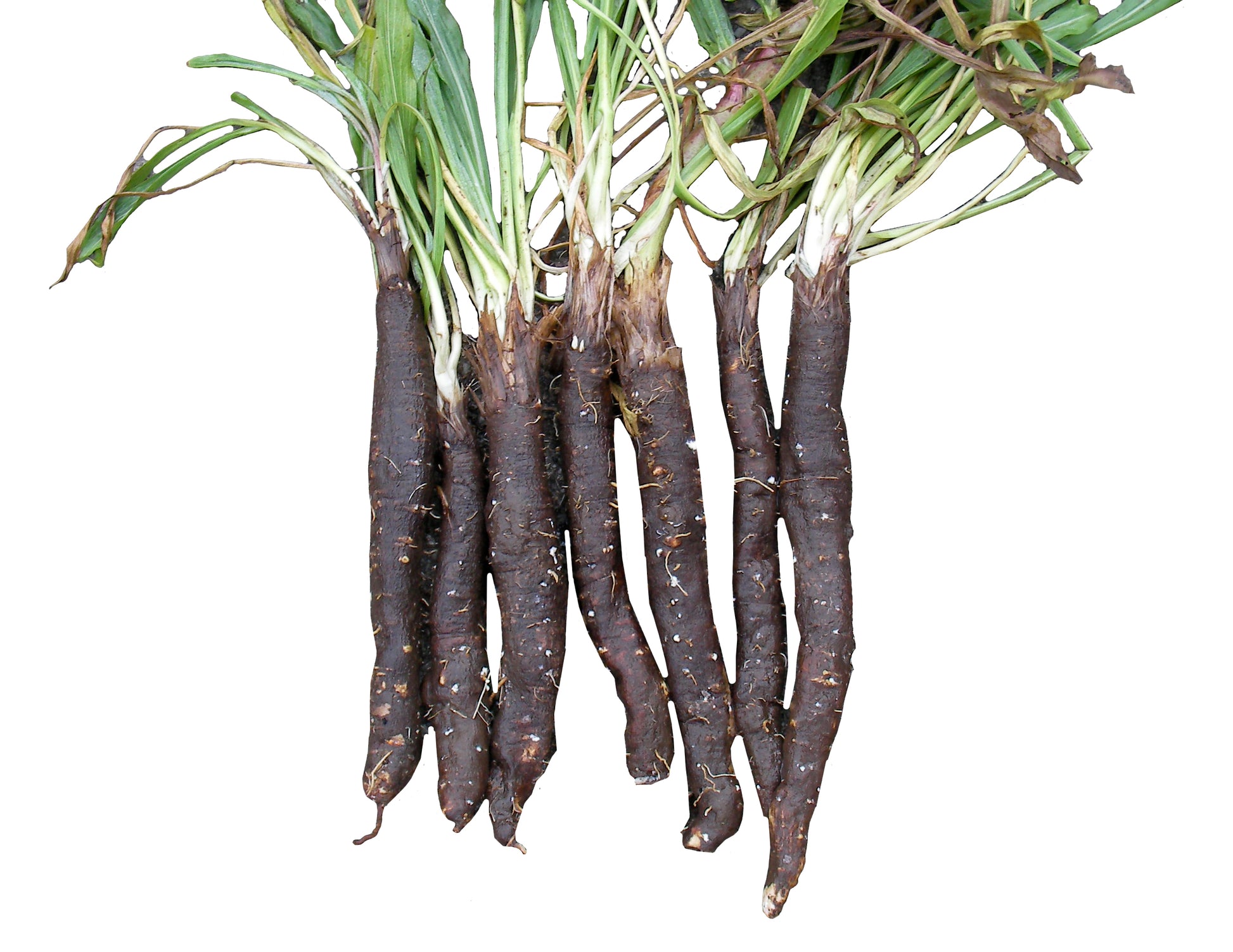 Scorzonera hispanica Perennial plant with black roots, ideally grown in sandy soil and eaten boiled, skinned and tossed in butter and lemon. Sow April-May, and lift for use as required. The small young leaves can also be eaten in salads.
