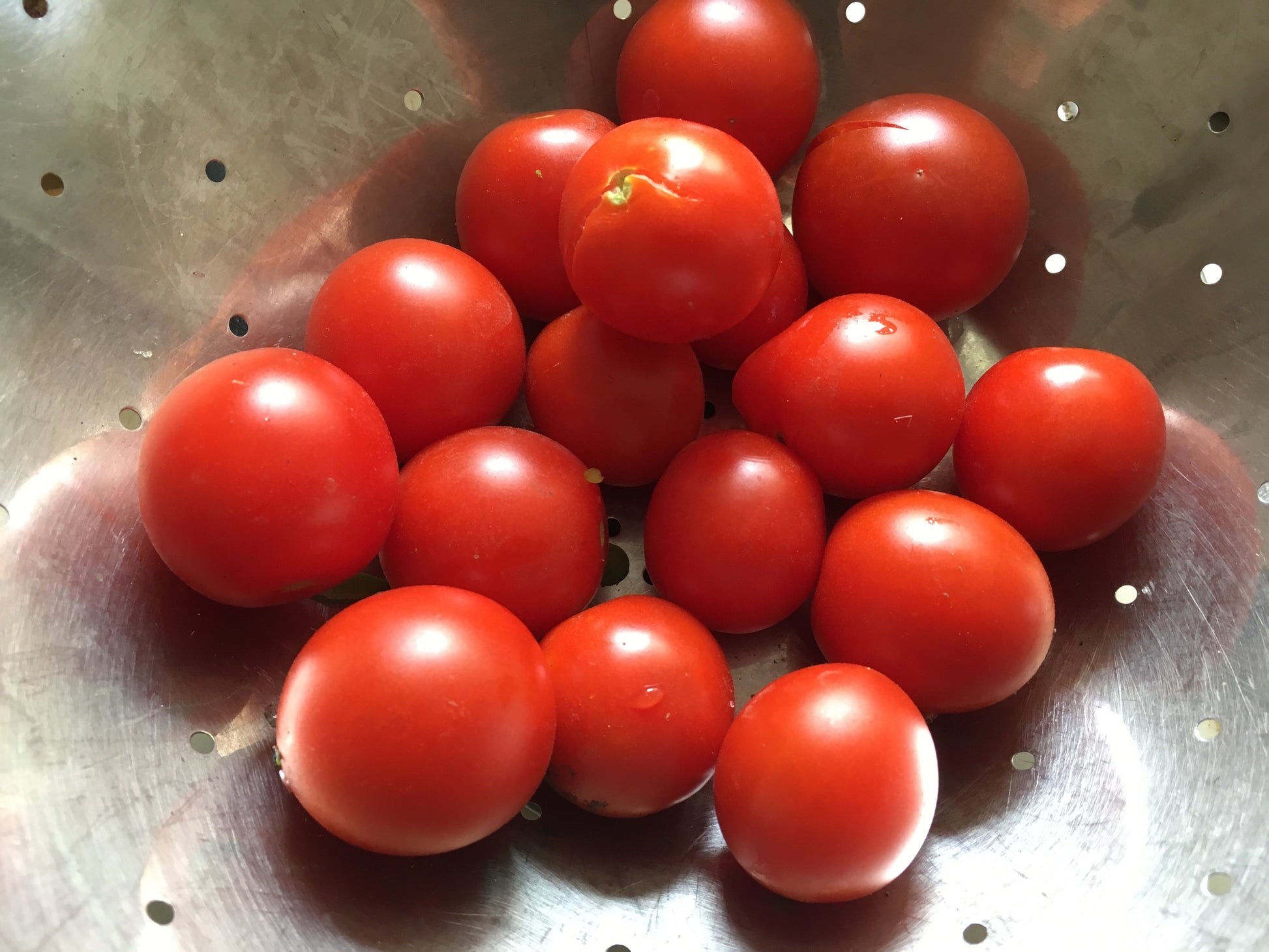 Tall vigorous vines grow masses of gorgeous red cherry tomatoes.