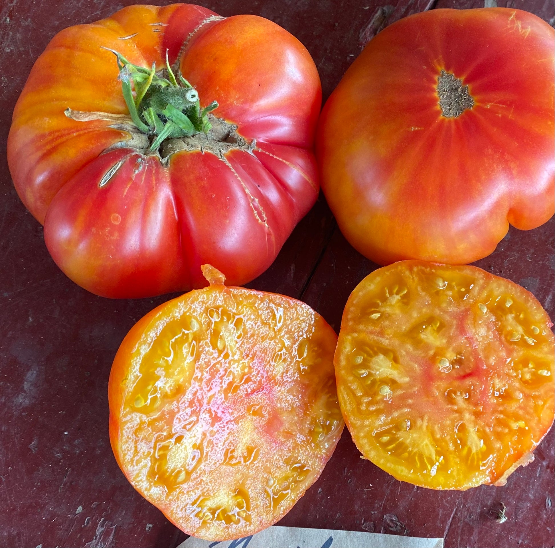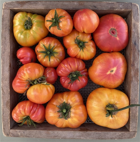 4-6 inch, round heirloom beefsteak. Wonderful intense flavour. Indeterminate Early Season Sow from January to March. Needs to be supported and have its side shoots removed.