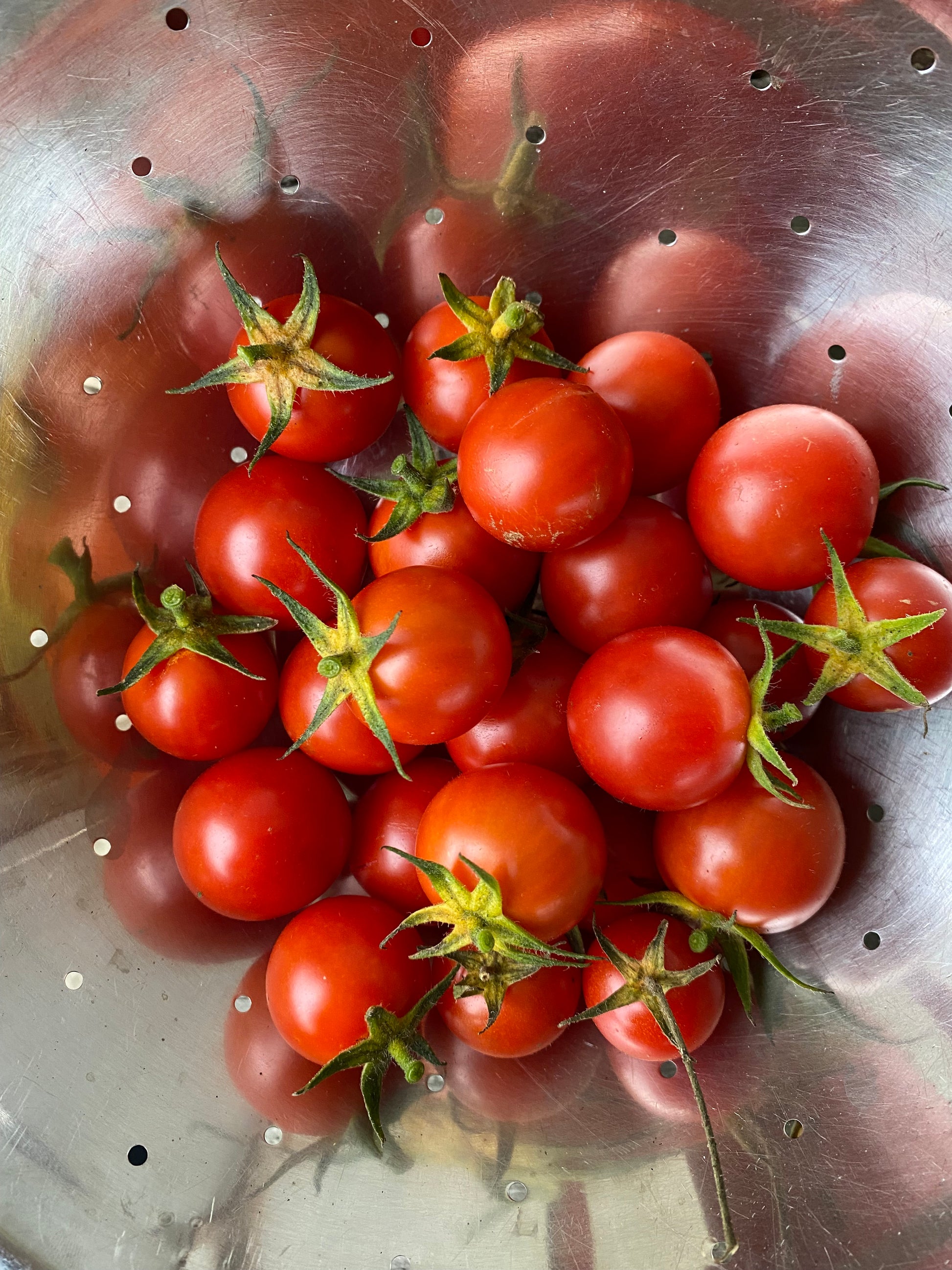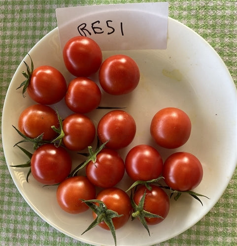 An indeterminate, disease resistant cherry tomato, with good aromatic flavour.