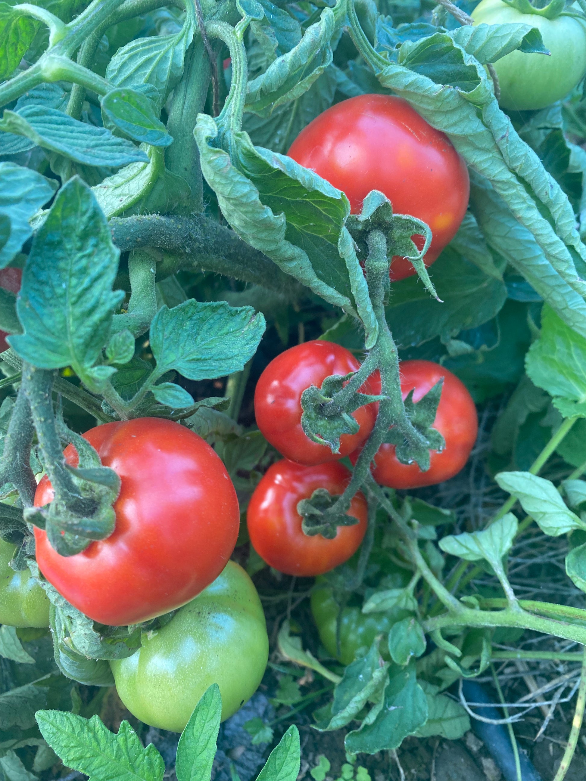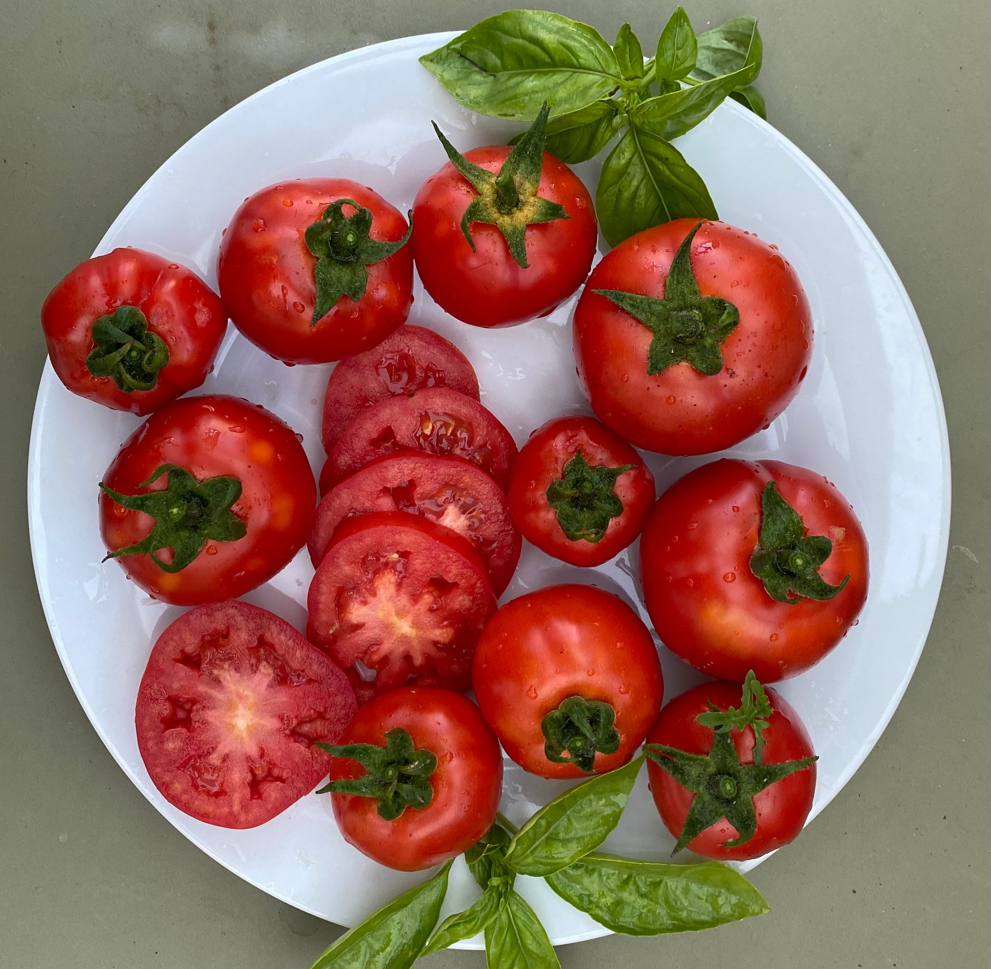 Early, high flavour, medium sized, pink salad tomato, semi bush not very tall.